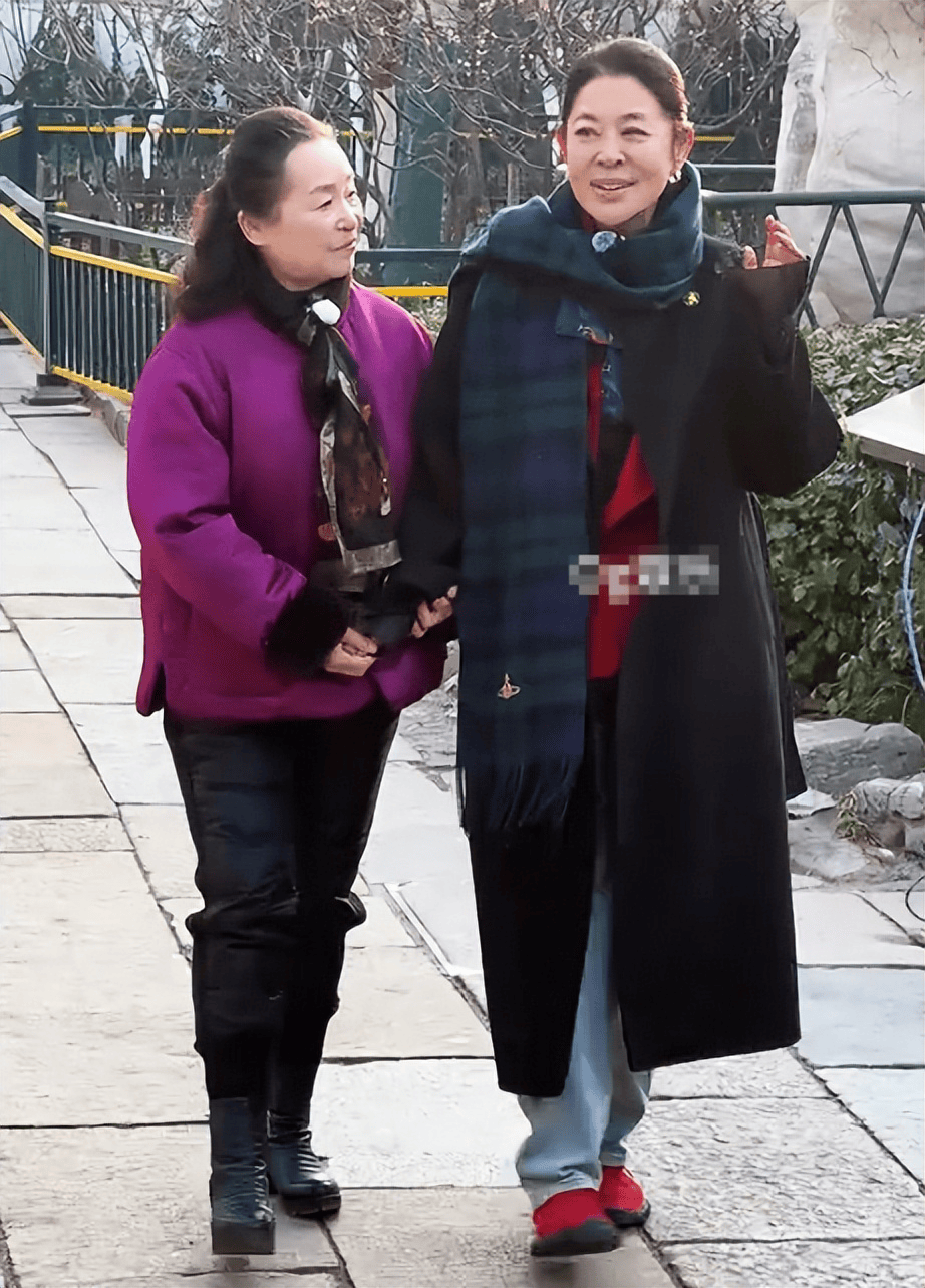 在录制间隙,她在泉边休息,双手背在身后,与工作人员低声交流。看到有人围观,她轻轻点头回应,神情松弛。从举止到眼神都能看出,她没有刻意维持所谓的“明星形象”,反而用一种自然的姿态与人相处,这种不紧不慢的气质很容易让人感到亲近。当天,她的好友牟卫红也现身,同框时,倪萍的精神状态明显更好,两人一边走一边聊着现场布景的细节,笑声不断。